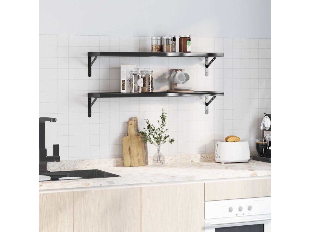 Nástěnné police 2 ks 100 x 23,5 x 3 cm černé nerezová ocel 30289