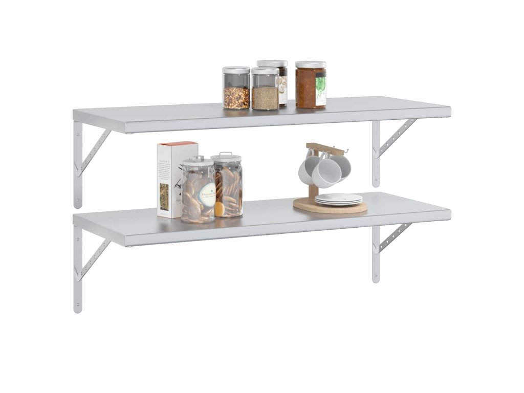 Nástěnné police 2 ks 100 x 40 x 3 cm stříbrné nerezová ocel 30278