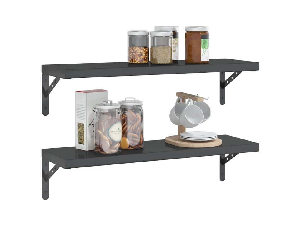 Nástěnné police 2 ks 75 x 23,5 x 3 cm černé nerezová ocel 30292