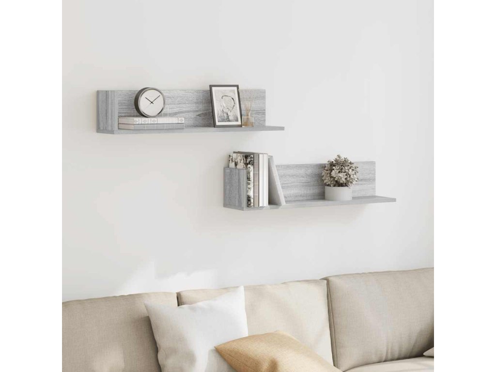 Nástěnné police 2 ks šedé sonoma 75 x 16,5 x 16,5 cm kompozit 860036