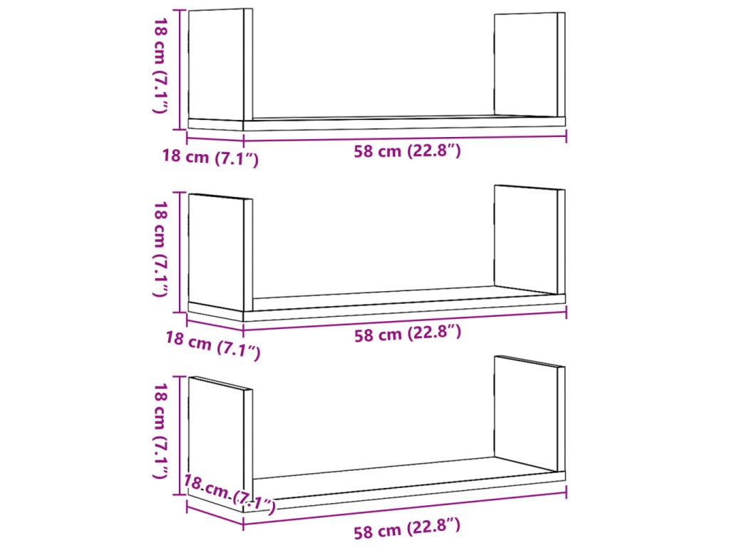 - Rozměry (každý kus): 58 x 18 x 18 cm (Š x H x V)