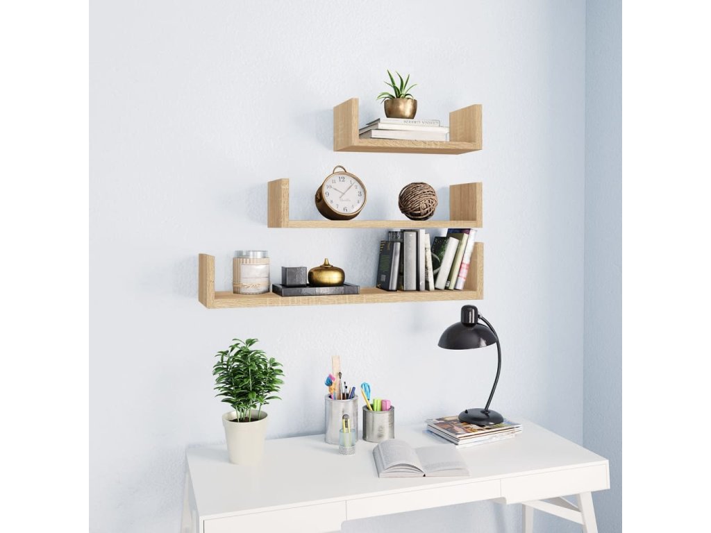 Nástěnné police 3 ks dub sonoma kompozitní dřevo 800201