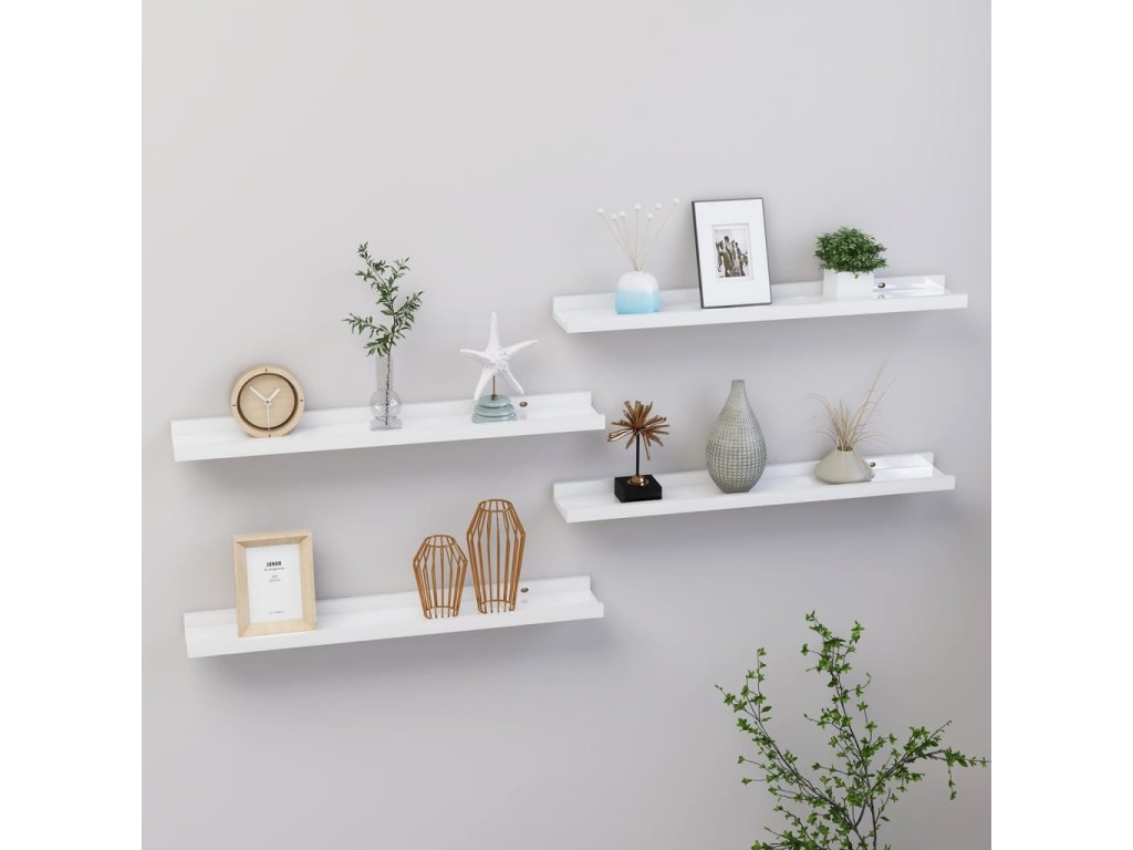 Nástěnné police 4 ks bílé s vysokým leskem 60 x 9 x 3 cm 326654