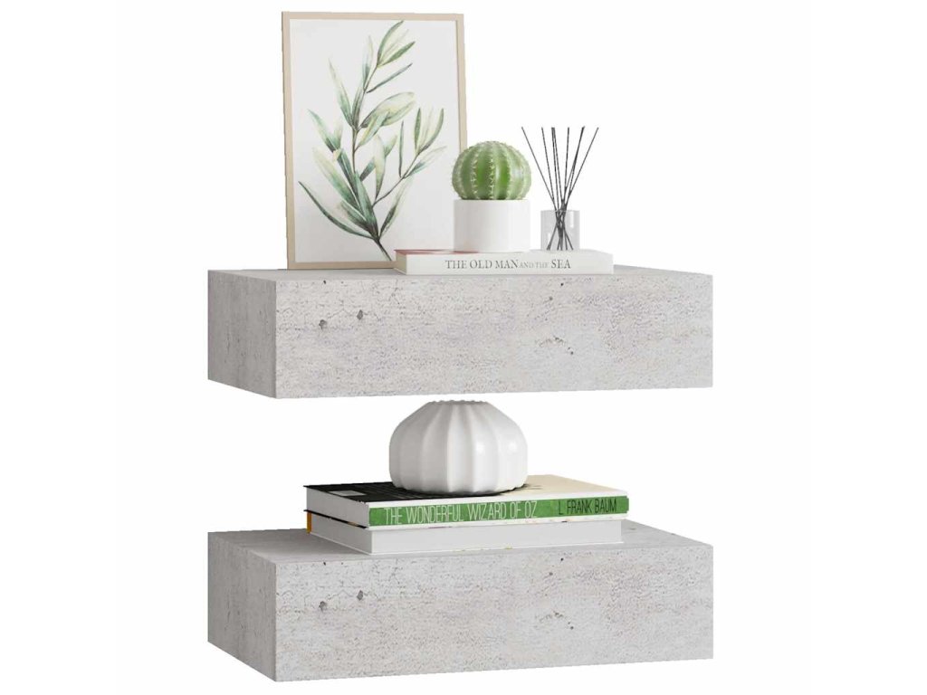 Nástěnné police se zásuvkou 2 ks betonově šedé 40x23,5x10cm MDF 330252