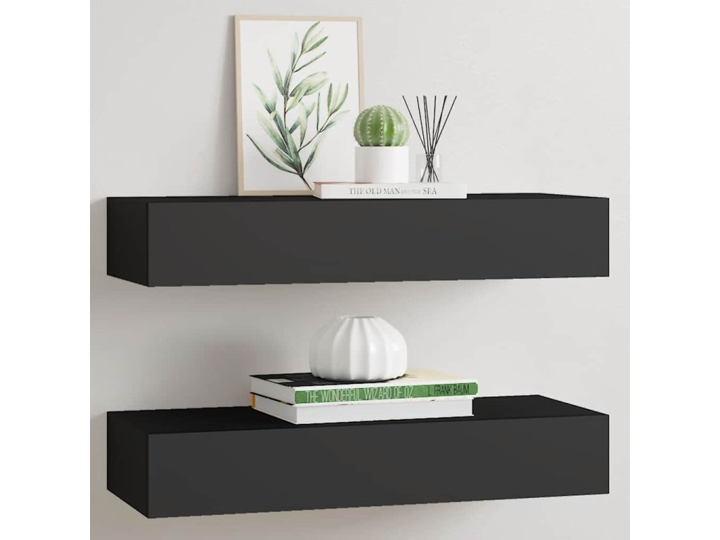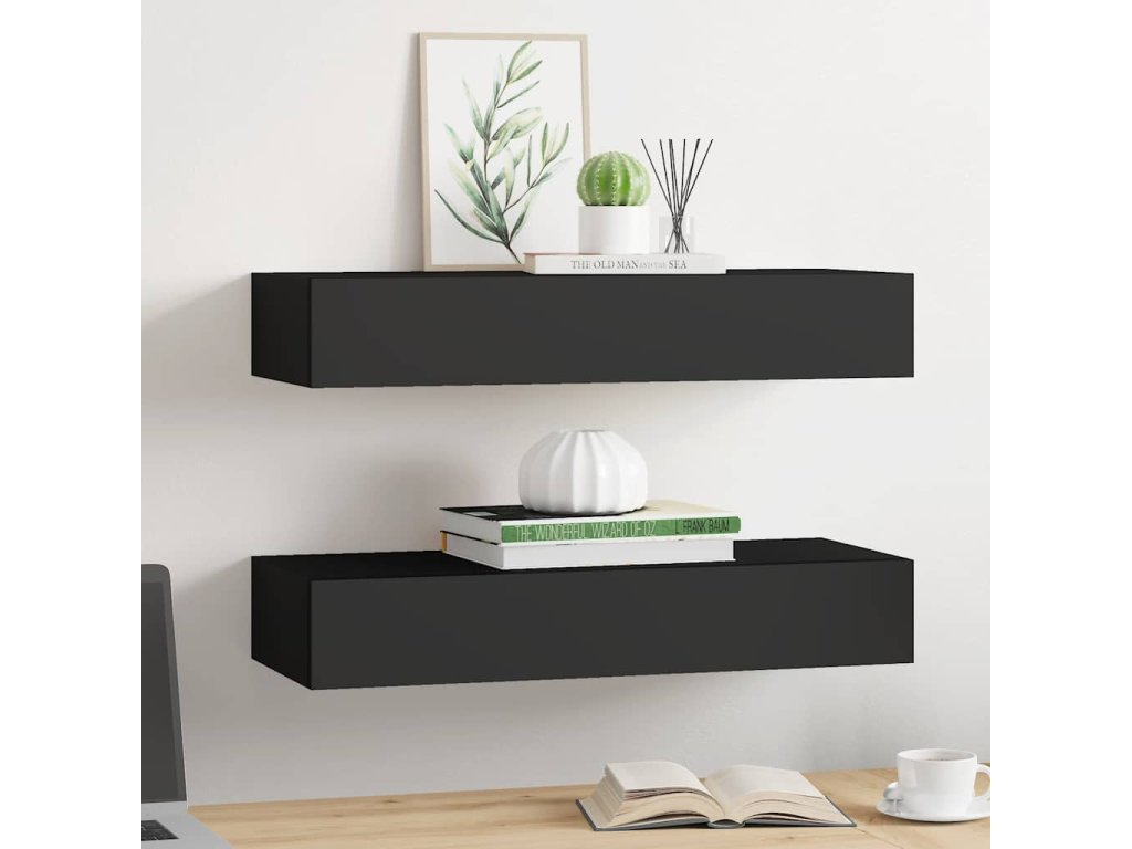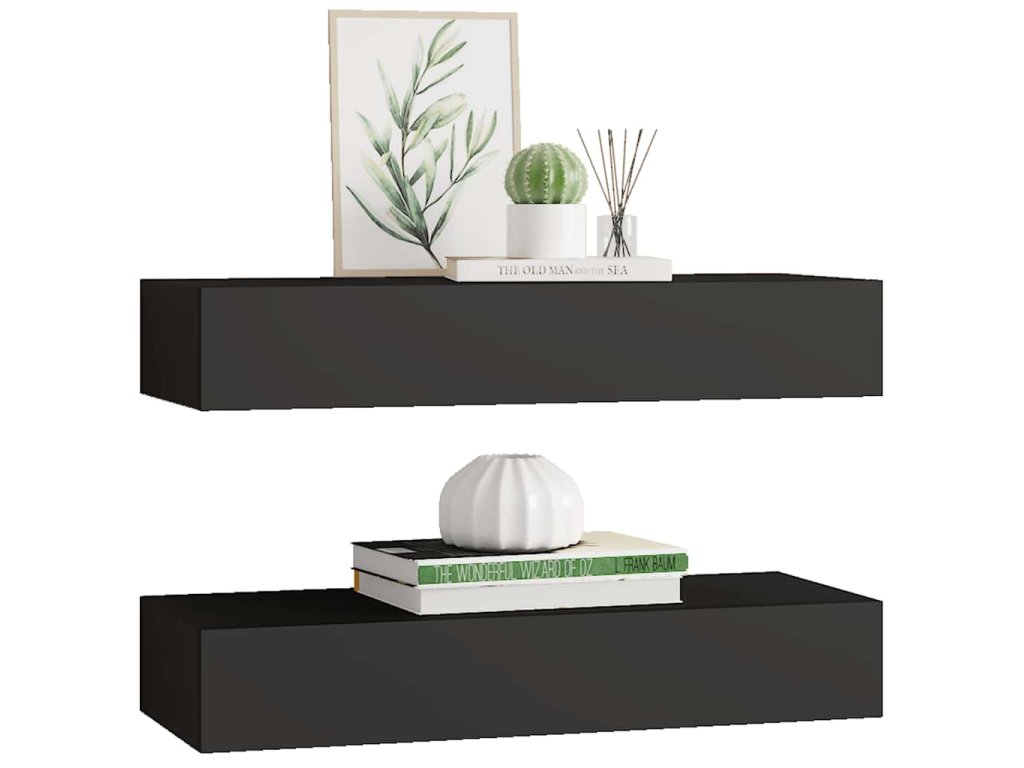 Nástěnné police se zásuvkou 2 ks černé 60 x 23,5 x 10 cm MDF 330258
