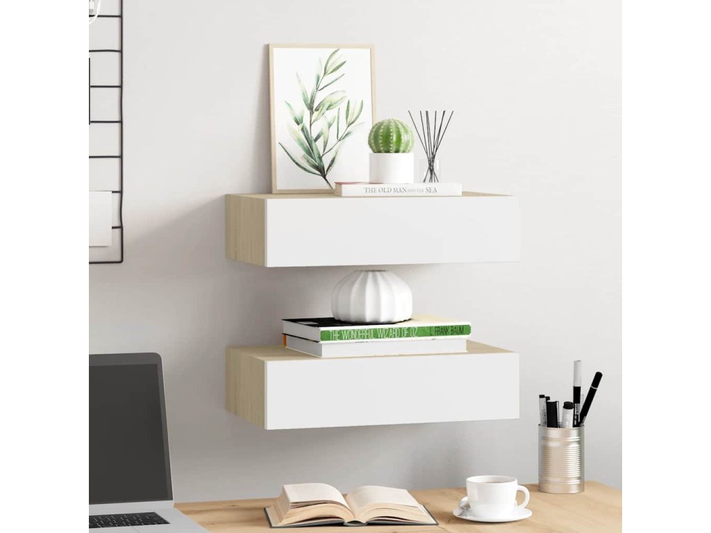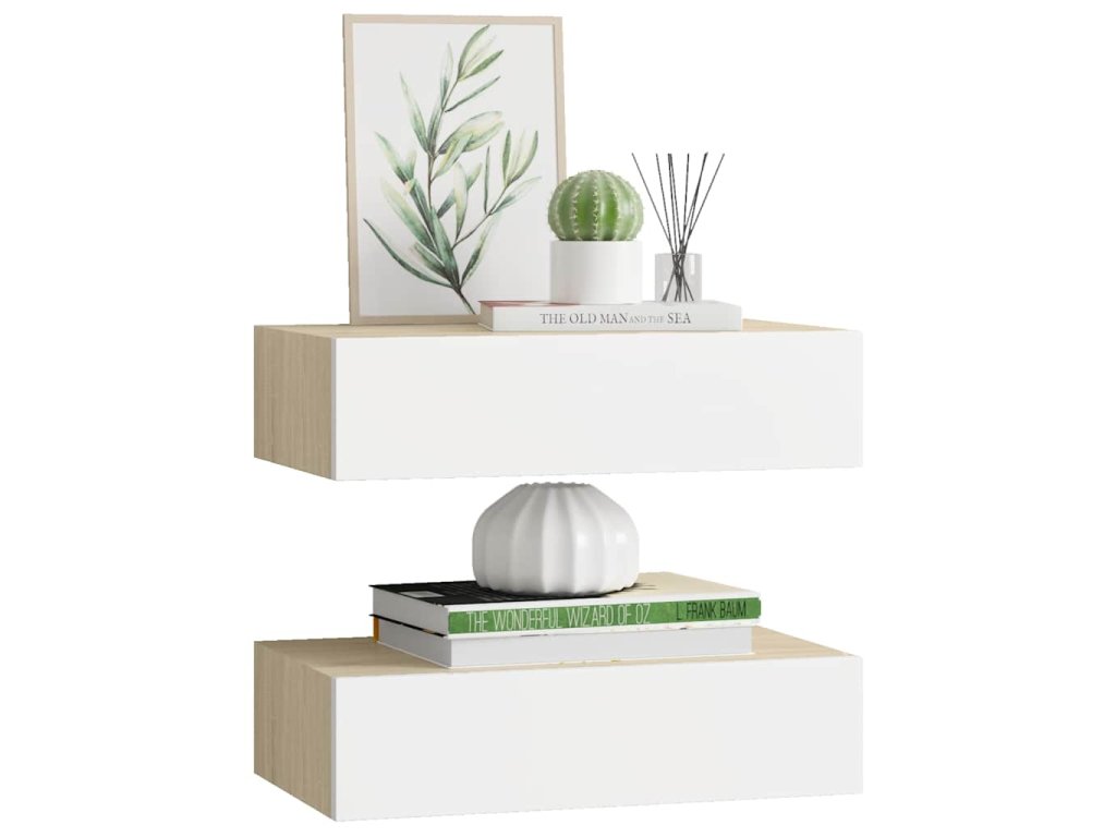 Nástěnné police se zásuvkou 2 ks dub a bílé 40x23,5x10 cm MDF 330250