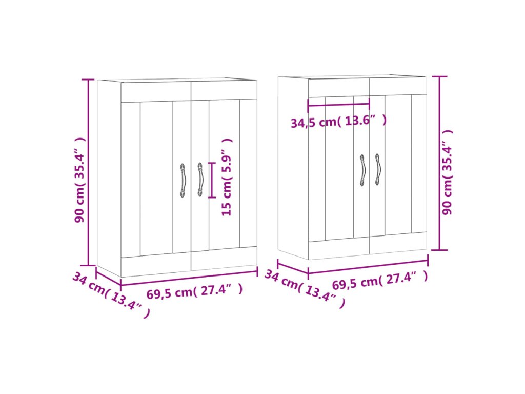 - Rozměry (každý kus): 69,5 x 34 x 90 cm (Š x H x V)