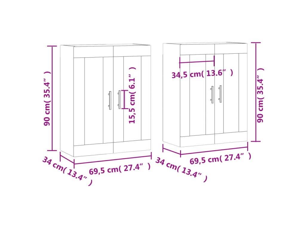 - Rozměry (každý kus): 69,5 x 34 x 90 cm (Š x H x V)