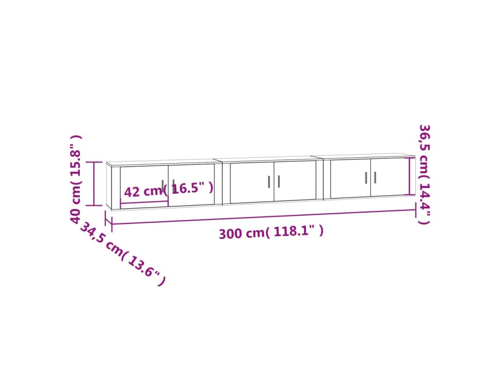Nástěnné TV skříňky 3 ks bílé 100 x 34,5 x 40 cm 3188374