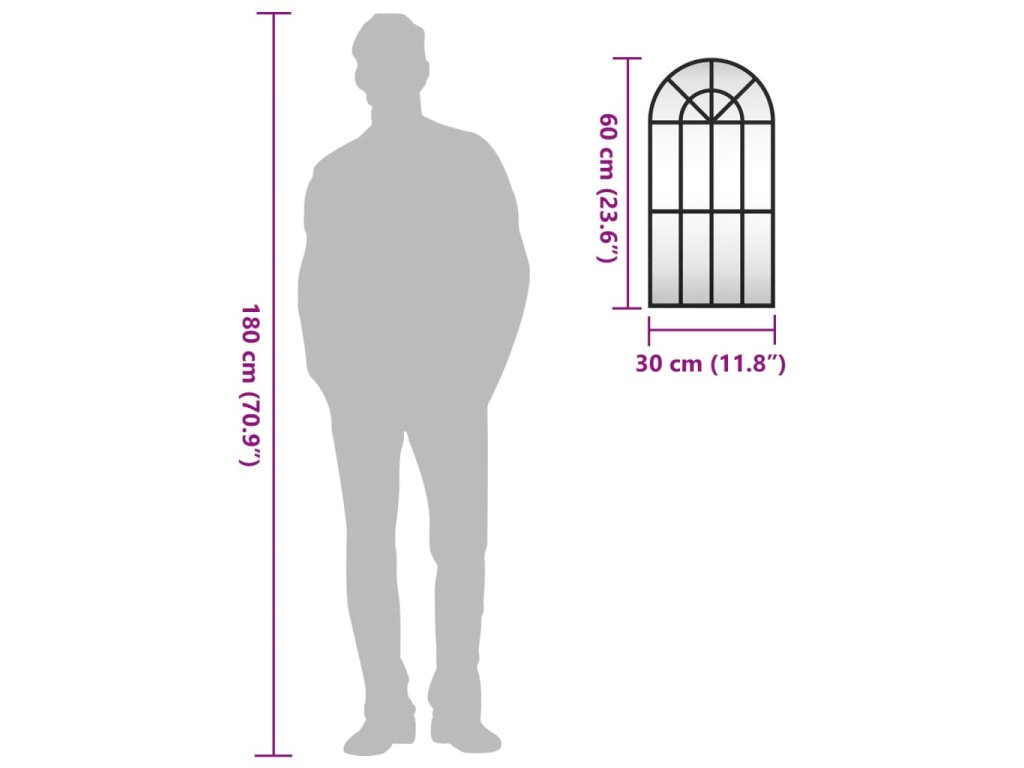 Nástěnné zrcadlo černé 30 x 60 cm oblouk železo 358624