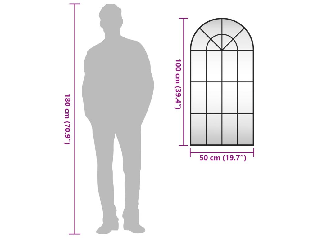 Nástěnné zrcadlo černé 50 x 100 cm oblouk železo 358626