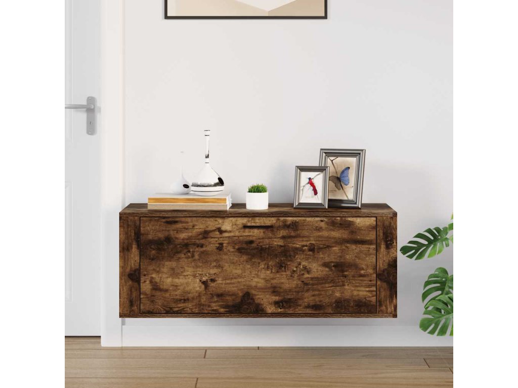 Nástěnný botník kouřový dub 100 x 35 x 38 cm kompozitní dřevo 821025