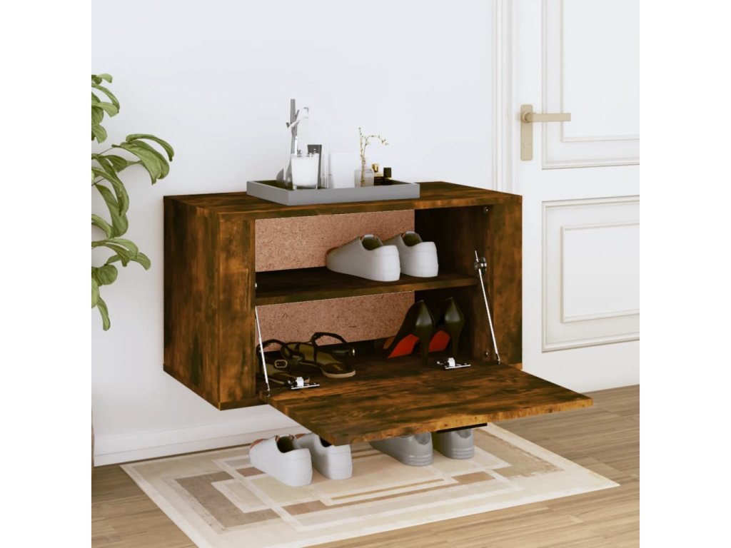 Nástěnný botník kouřový dub 70 x 35 x 38 cm masivní borovice 821017