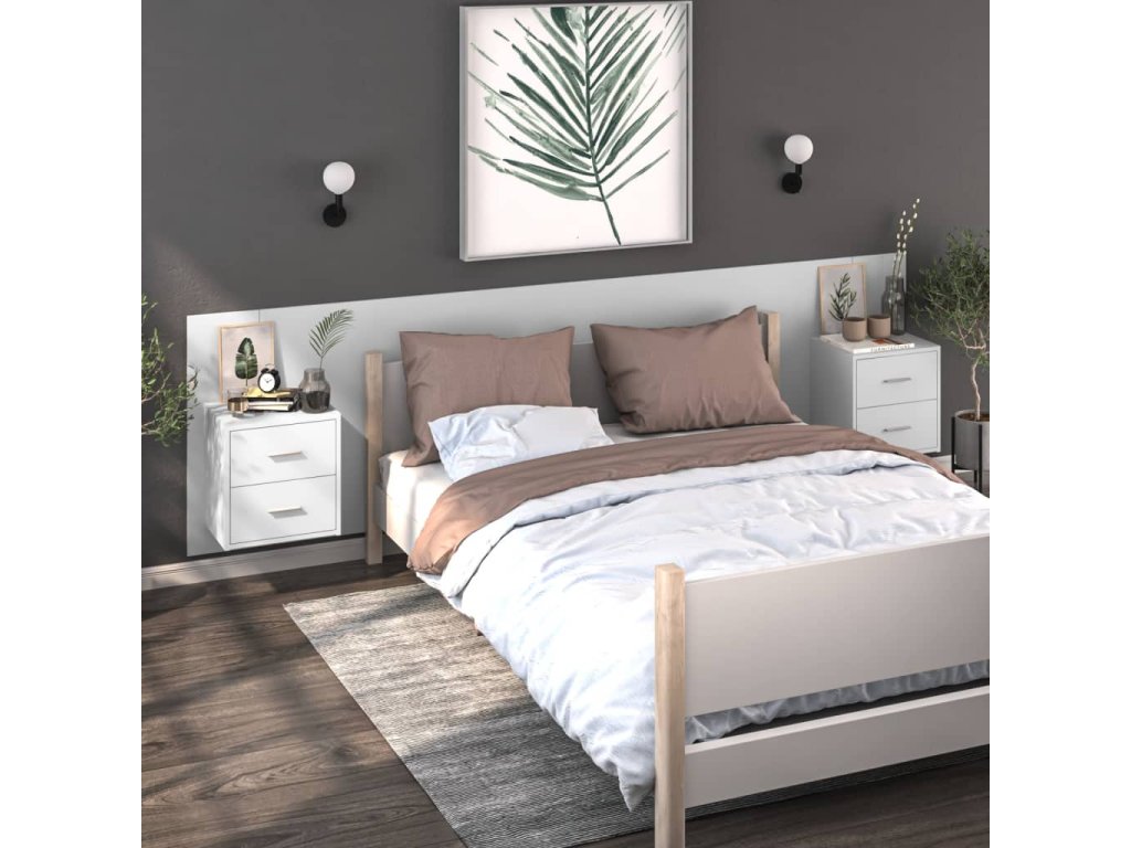 Nástěnný noční stolek bílý s vysokým leskem 811001