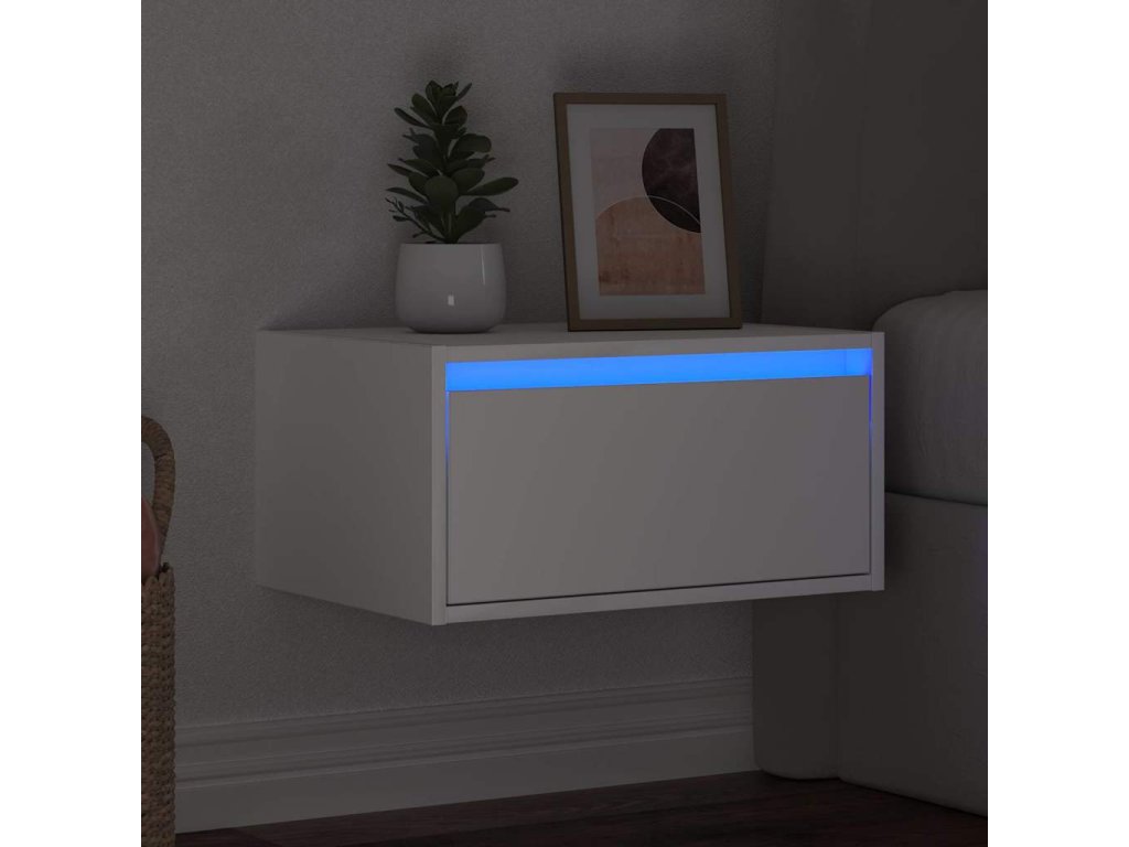 Nástěnný noční stolek s LED osvětlením bílý 860211