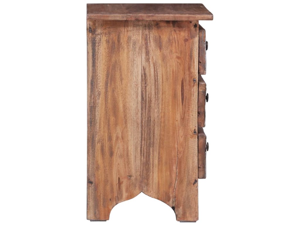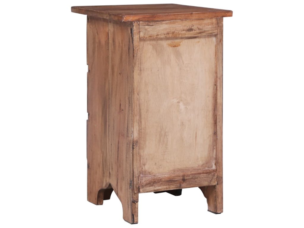 Tato skříňka z masivního mahagonového dřeva je mimořádně odolná a robustní. Mahagon je tropické tvrdé dřevo, které vyniká svou krásou, odolností a barvou. Speciální řemeslné zpracování dodává tomuto výrobku vintage, hřejivý a autentický vzhled. Produkt byl celý vyroben ručně. Každý krok výroby byl proveden s tou největší pečlivostí, ať už jde o leštění, natírání či lakování. Skříňka poskytuje dostatek úložného prostoru pro úhledné uspořádání různých předmětů. Tento noční stolek se navíc snadno čistí suchým hadříkem.