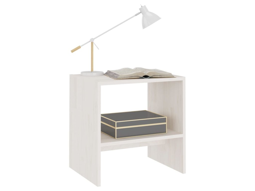 Noční stolek bílý 40 x 30,5 x 40 cm masivní borové dřevo 808055