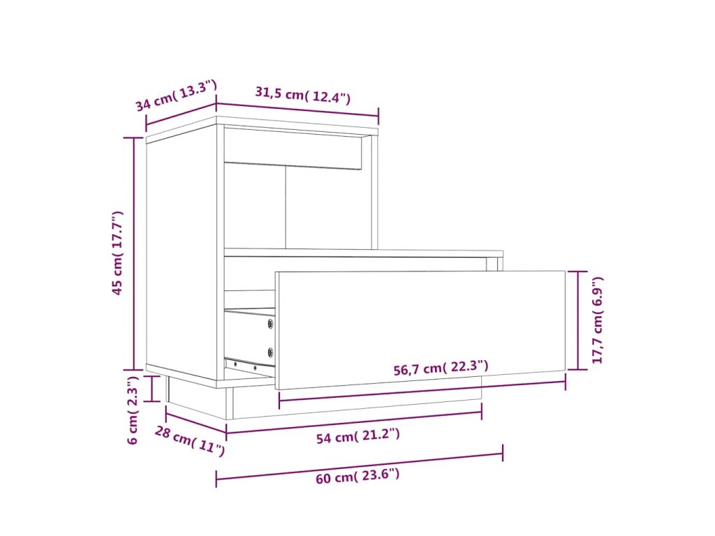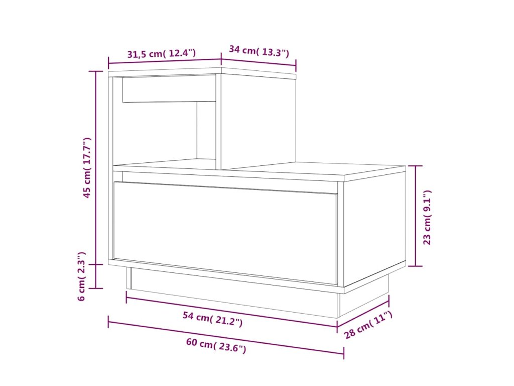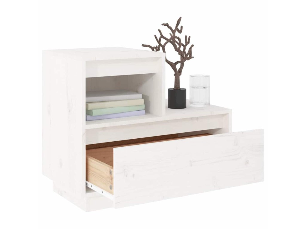 Noční stolek bílý 60 x 34 x 51 cm masivní borové dřevo 814376