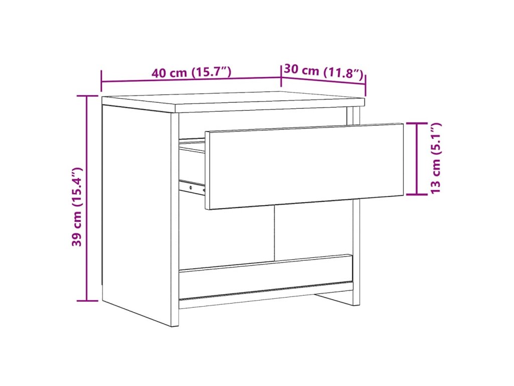 - Materiál s dlouhou životností: Tento noční stolek je vyroben z kompozitního dřeva, je tedy robustní, odolný a všestranný.