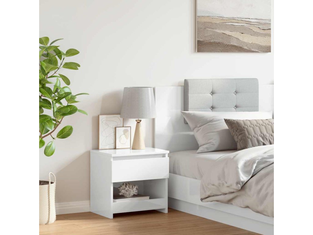 Noční stolek bílý s vysokým leskem 40x30x39 cm kompozitní dřevo 803455