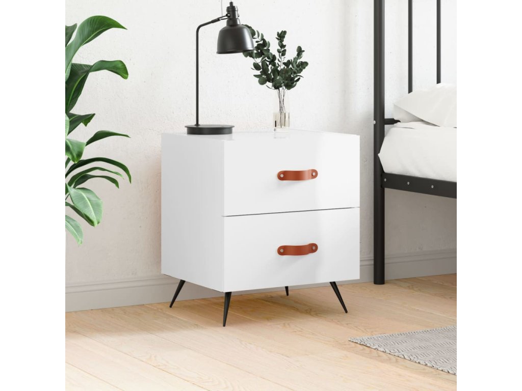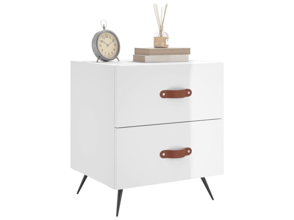Noční stolek bílý vysoký lesk 40x35x47,5 cm kompozitní dřevo 827248