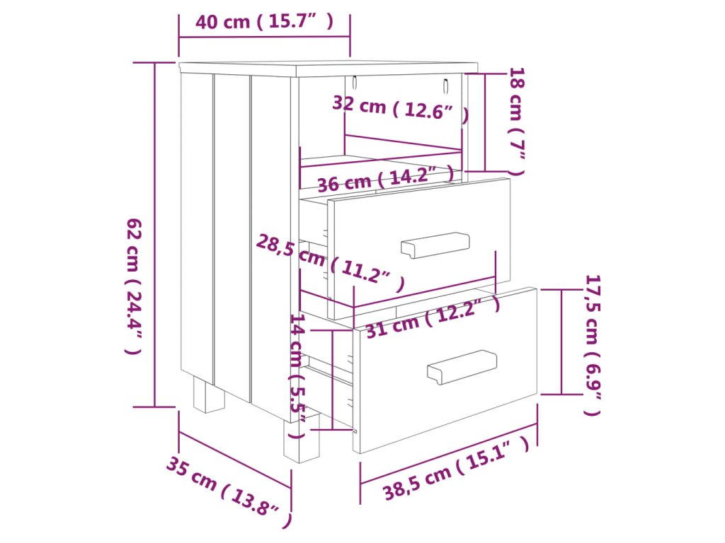 Noční stolek je vyrobený z masivního borového dřeva, takže je stabilní a odolný. Obsahuje dvě hladce posuvné zásuvky a jednu otevřenou přihrádku, poskytne vám tedy spoustu prostoru pro přehledné ukládání časopisů, knih, dálkových ovladačů a dalších drobností, které chcete mít po ruce. Robustní horní deska je navíc ideální pro vystavení dekorativních předmětů.