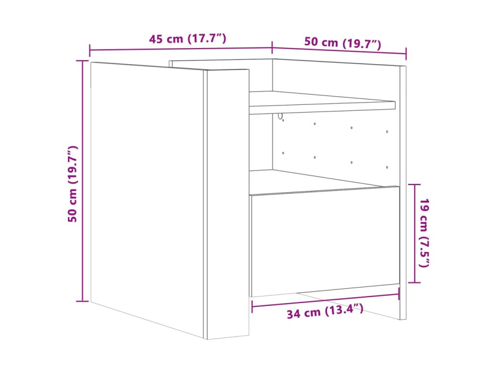 Noční stolek hnědý dub 45 x 50 x 50 cm kompozitní dřevo 848282