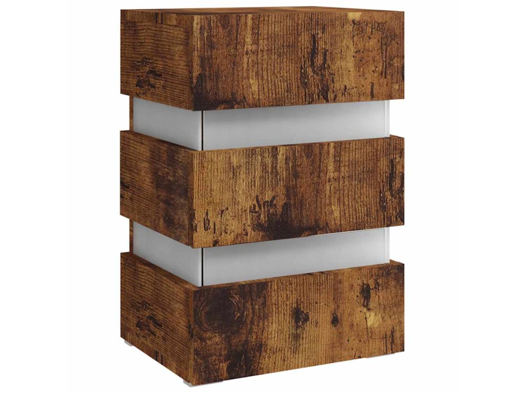 Noční stolek vyrobený z kvalitního kompozitního dřeva je stabilní a snadno se čistí vlhkým hadříkem. Poskytuje dostatek úložného prostoru pro ukládání časopisů, knih, dálkových ovladačů a dalších drobností, které budete mít přehledně uspořádané a po ruce. Stolek je navíc vybaven LED světly, které pokoji dodají moderní šmrnc. Tento noční stolek má vše, co hledáte!
