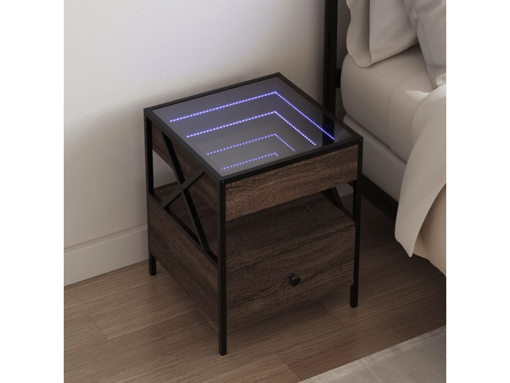 Tento noční stolek s infinity LED zrcadlem se stane nadčasovým doplňkem vašeho interiéru.