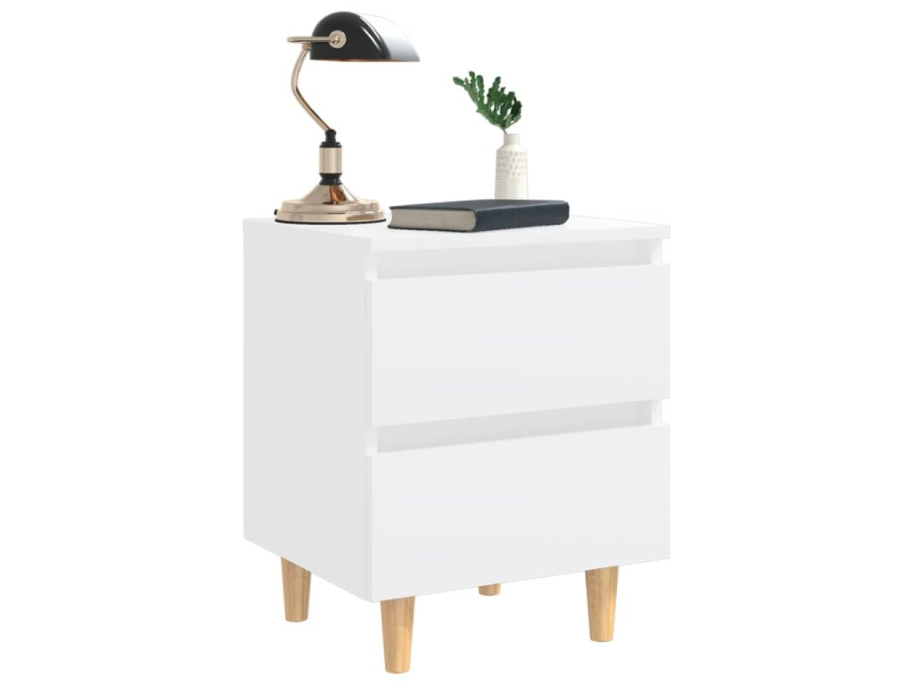 Noční stolek s nohami z masivní borovice bílý 40 x 35 x 50 cm 805851