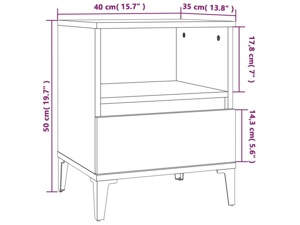 - Dostatek úložného prostoru: Noční stolek je navržen s přihrádkou a zásuvkou, kde budete mít vaše věci uspořádané a neustále po ruce.