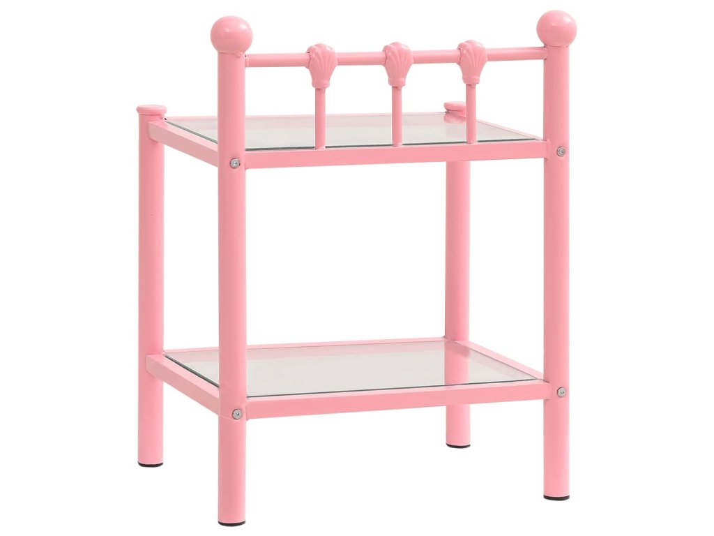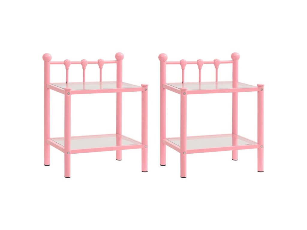 Noční stolky 2 ks růžové a průhledné kov a sklo 325079