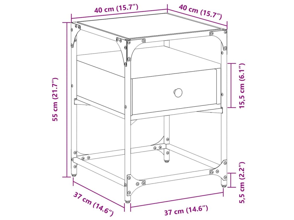 Noční stolek černý 50 x 35 x 60 cm sklo a ocel 352997