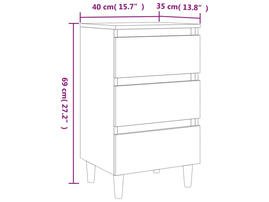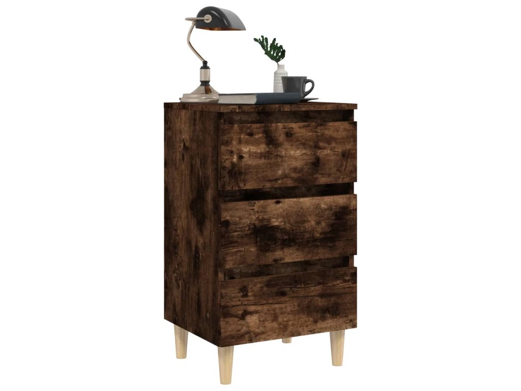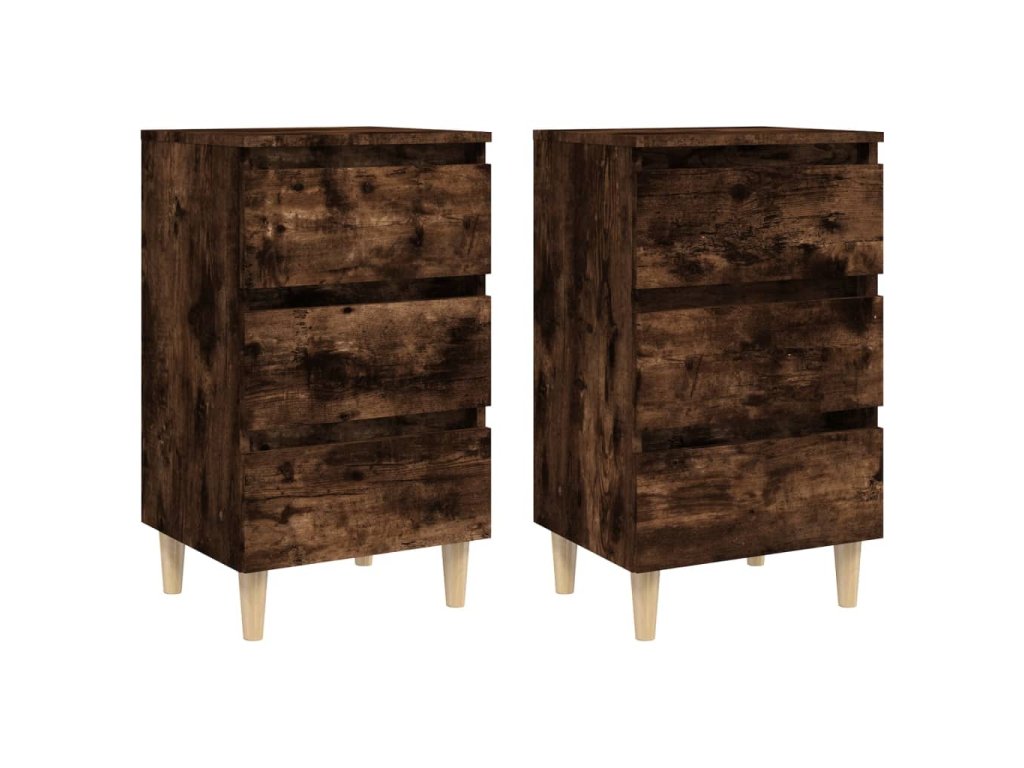 Noční stolky masivní dřevěné nohy 2 ks kouřový dub 40x35x69 cm 813135