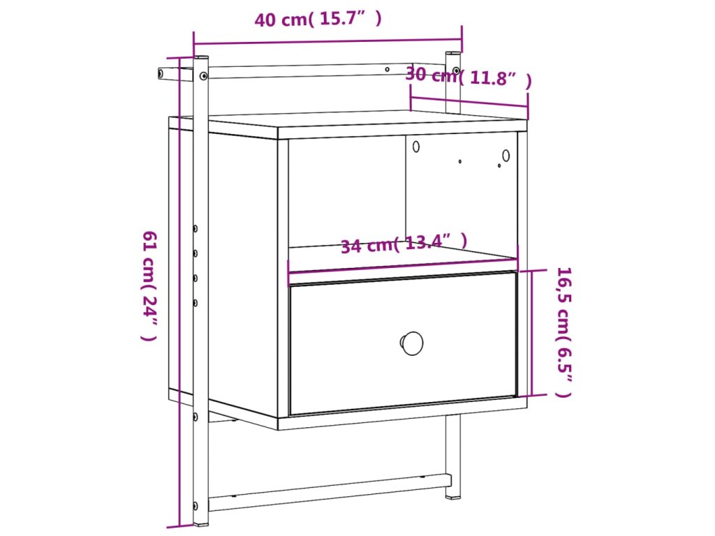 Nástěnný noční stolek s LED osvětlením kouřový dub 836834