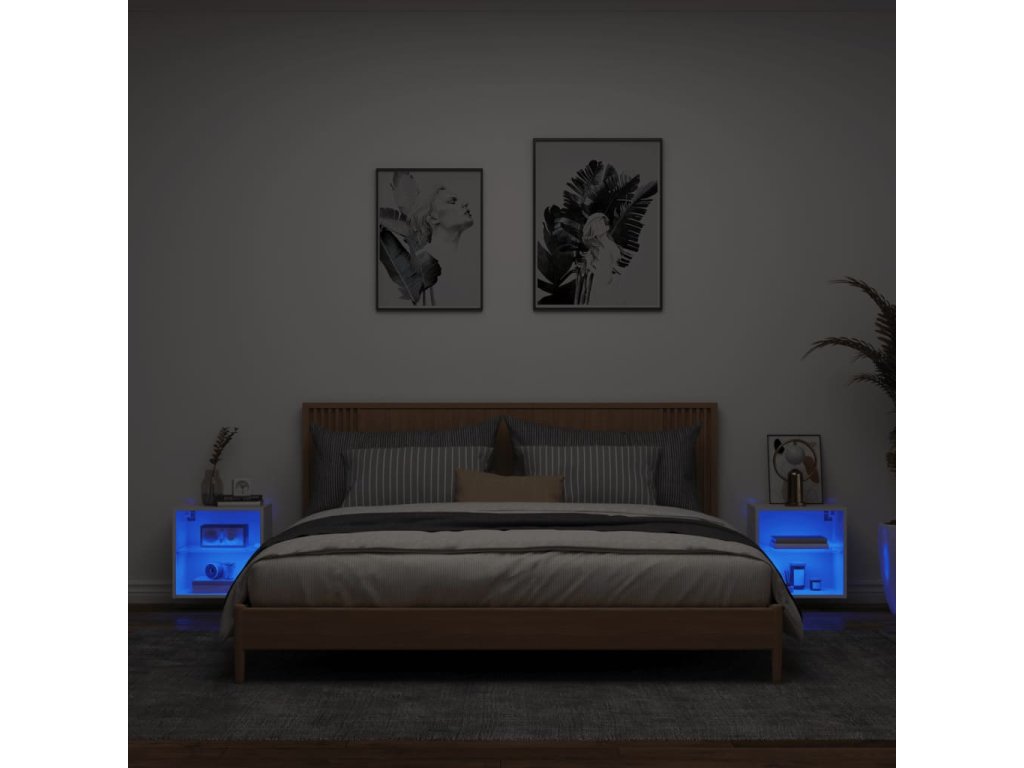 Noční stolky s LED osvětlením nástěnné 2 ks bílé 837065