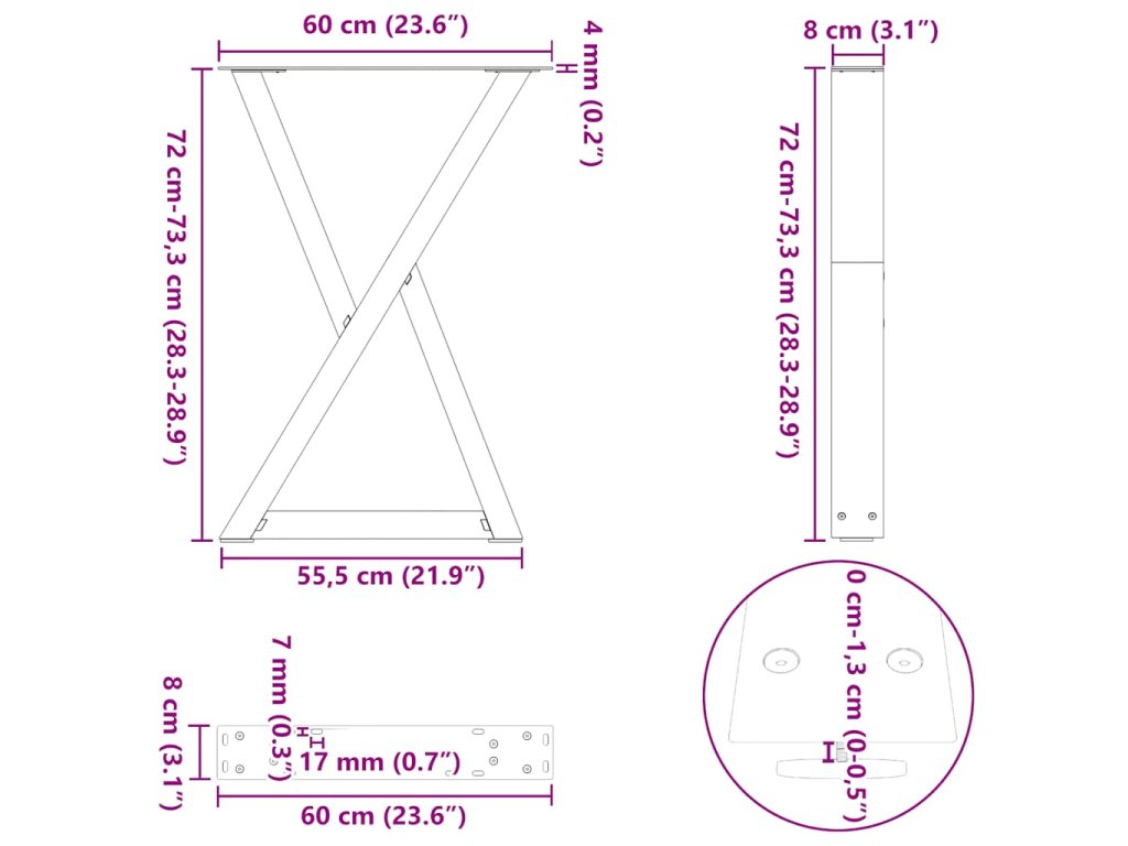 - Praktický design: Tato noha jídelního stolu obsahuje nastavitelné nivelační prvky, které zajišťují stabilitu i na nerovných podlahách a minimalizují poškrábání podlahy. Konzola má navíc předvrtané otvory a šrouby, které jsou součástí dodávky, a které lze použít k upevnění nohy k desce stolu (nejsou součástí dodávky), což usnadňuje montáž.