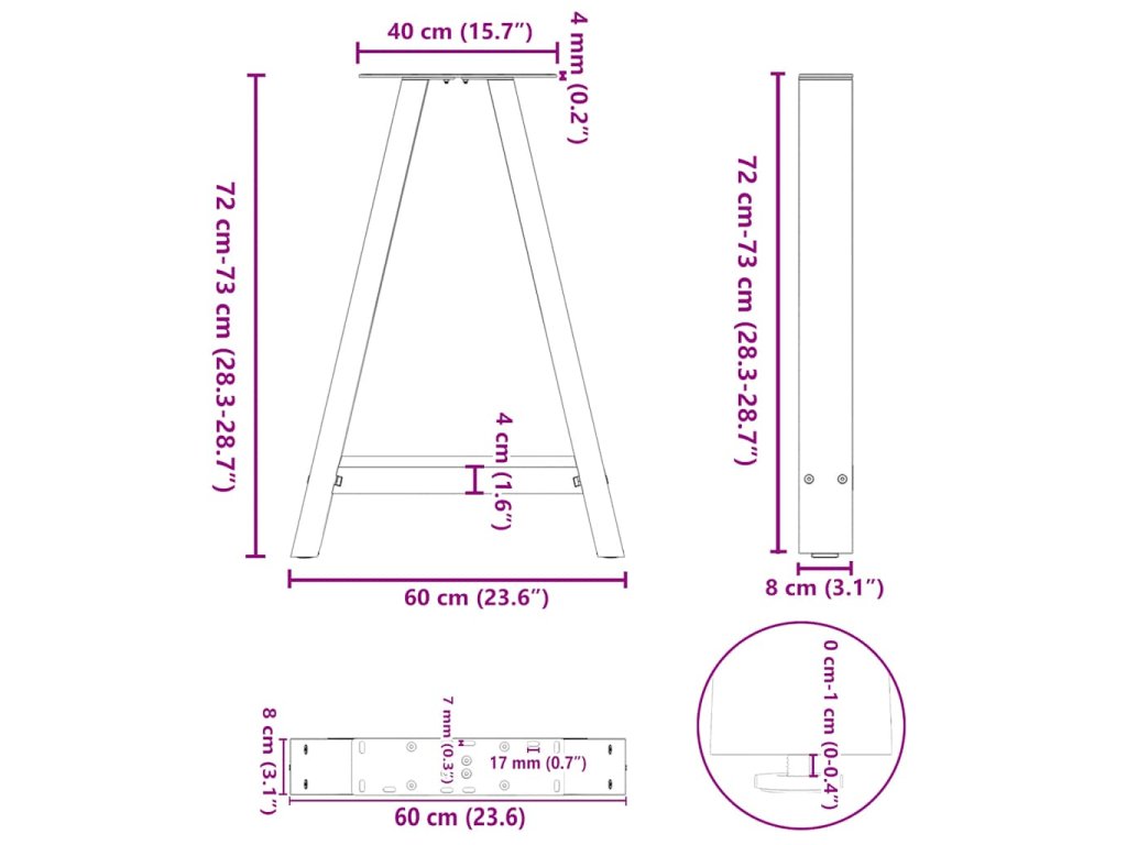 Nohy k jídelnímu stolu ve tvaru A, 2 ks, 60 x (72-73) cm, ocel 4012851