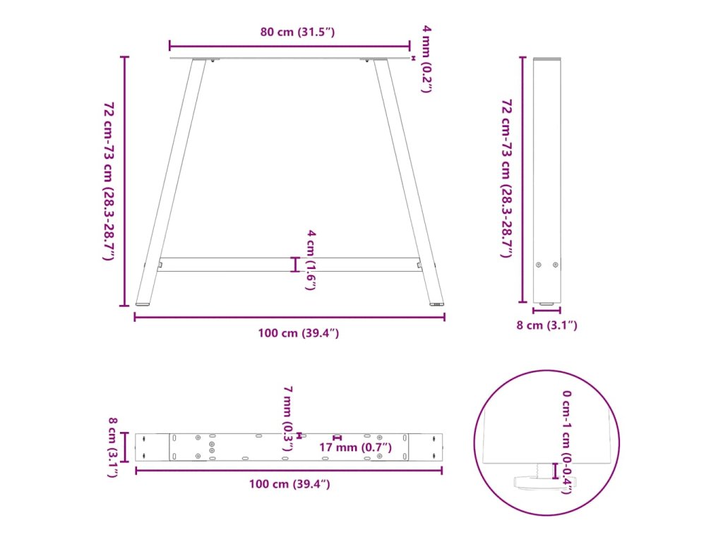 Nohy k jídelnímu stolu ve tvaru A, 2 ks, černé, 100 x (72-73) cm, ocel 4012864