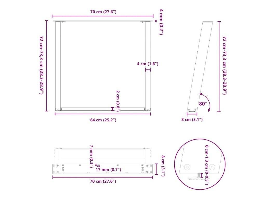 Nohy k jídelnímu stolu ve tvaru U, 2 ks, černé, 70 x (72-73) cm, ocel 4012792