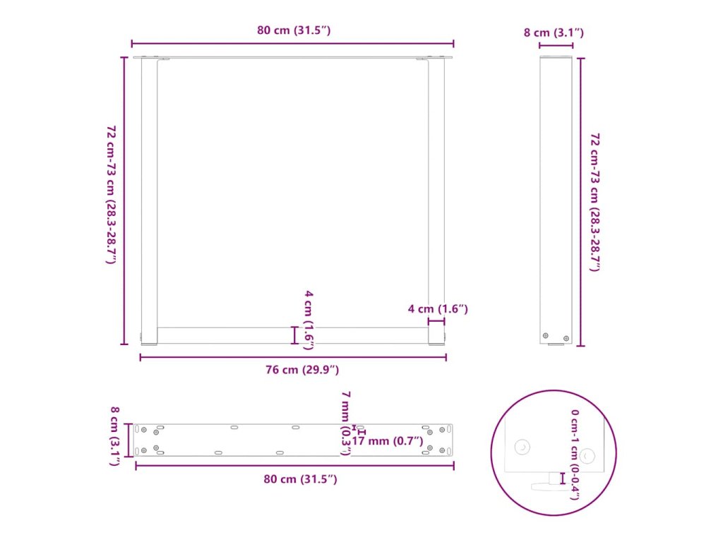 Nohy k jídelnímu stolu ve tvaru U, 2 ks, černé, 80 x (72-73) cm, ocel 4013188