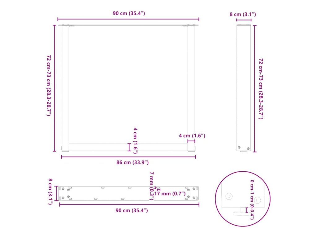 - Praktický design: Tato noha jídelního stolu je vybavena nastavitelnými podpěrami, které zajišťují stabilitu i na nerovných podlahách a minimalizují poškrábání podlahy. Konzola má navíc předvrtané otvory a dodávané šrouby, které lze použít k upevnění nohy k desce stolu (nejsou součástí dodávky), což usnadňuje montáž.