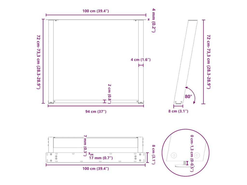 Nohy k jídelnímu stolu ve tvaru U, 2 ks, přírodní ocel, 100 x (72-73) cm, ocel 4012807