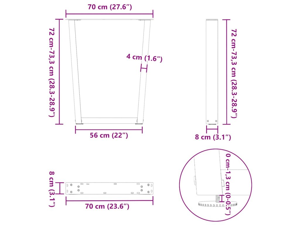 Nohy k jídelnímu stolu ve tvaru V, 2 ks, antracitové, 70 x (72-73,3) cm, ocel 4012646