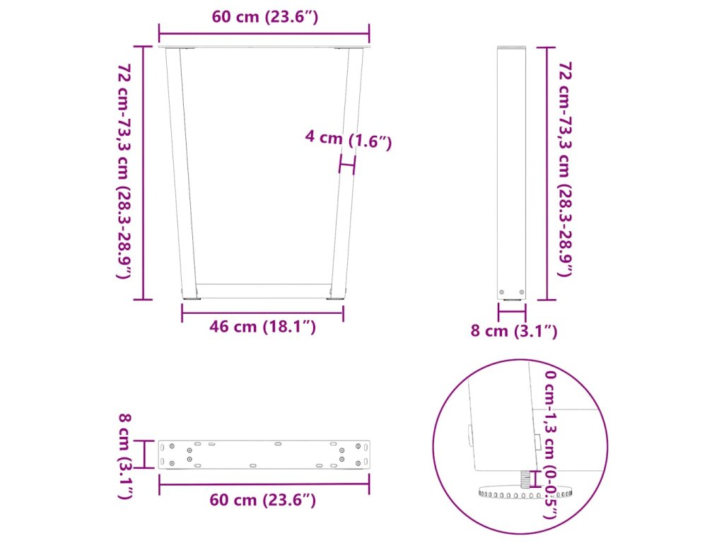 - Praktický design: Tato noha jídelního stolu obsahuje nastavitelné nivelační prvky, které zajišťují stabilitu i na nerovných podlahách a minimalizují poškrábání podlahy. Konzola má navíc předvrtané otvory a šrouby, které jsou součástí dodávky, a které lze použít k upevnění nohy k desce stolu (nejsou součástí dodávky), což usnadňuje montáž.