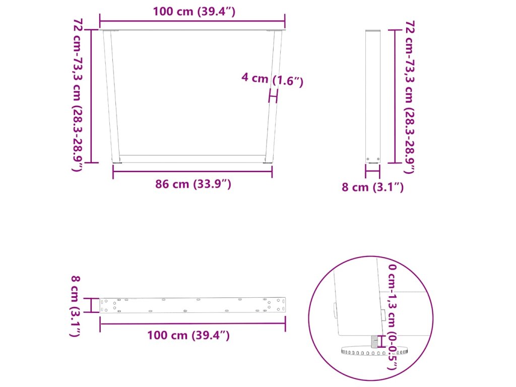- Praktický design: Tato noha jídelního stolu obsahuje nastavitelné nivelační prvky, které zajišťují stabilitu i na nerovných podlahách a minimalizují poškrábání podlahy. Konzola má navíc předvrtané otvory a šrouby, které jsou součástí dodávky, a které lze použít k upevnění nohy k desce stolu (nejsou součástí dodávky), což usnadňuje montáž.
