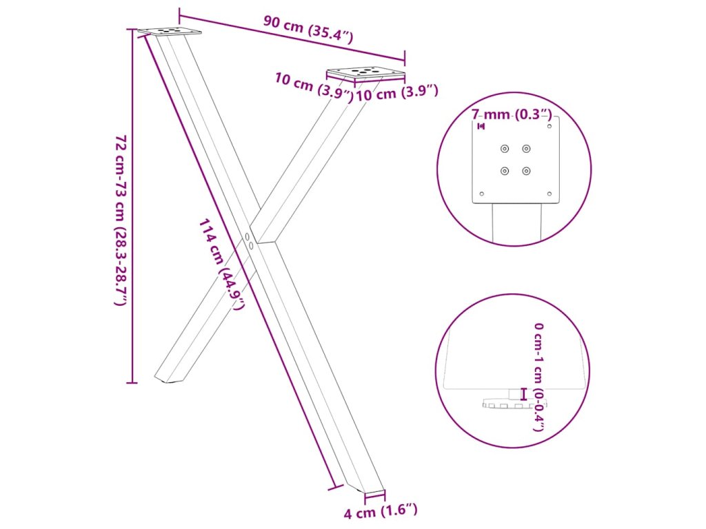 Nohy k jídelnímu stolu ve tvaru X, 2 ks, antracitové, 90 x (72-73) cm, ocel 4012926