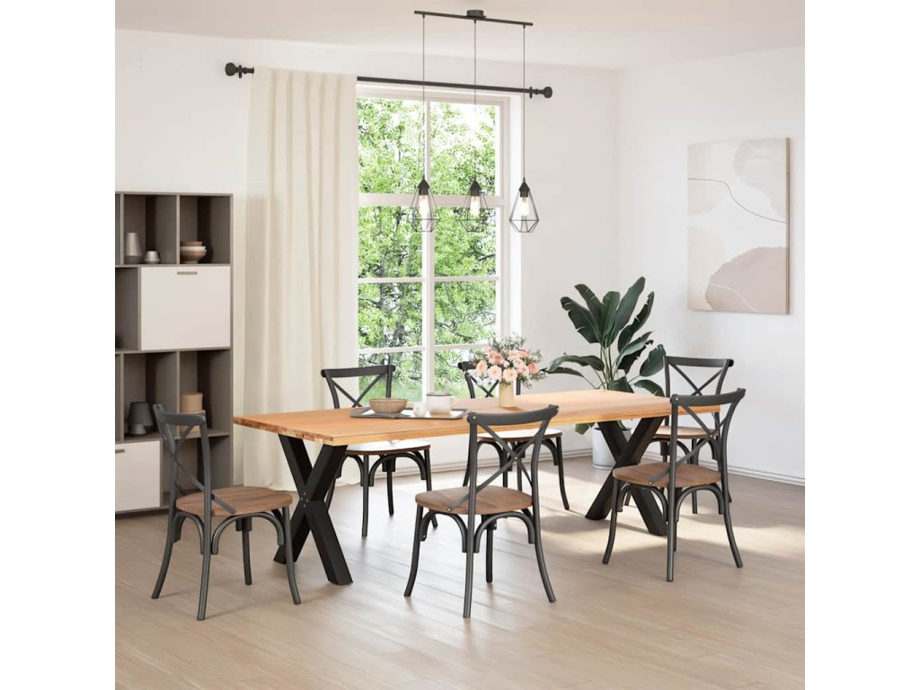 - Robustní konstrukce: Kovová noha stolu ve tvaru X zajišťuje, že unese i těžkou desku stolu.