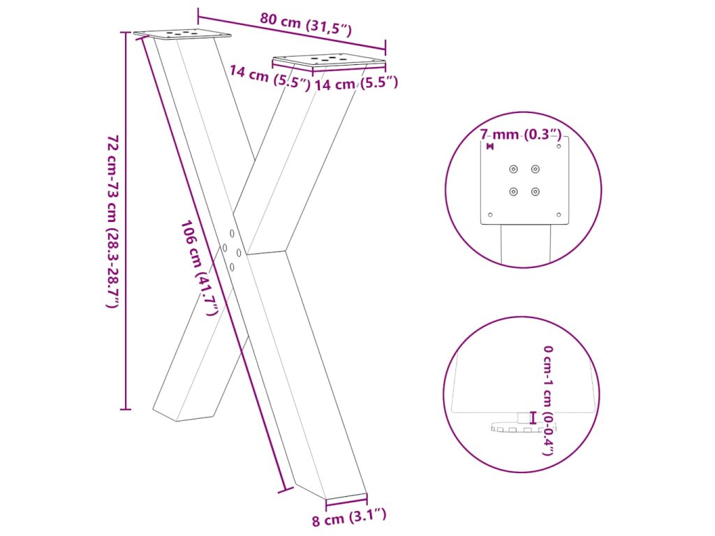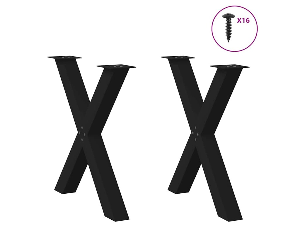 Nohy k jídelnímu stolu ve tvaru X, 2 ks, černé, 80 x (72-73) cm, ocel 4012980