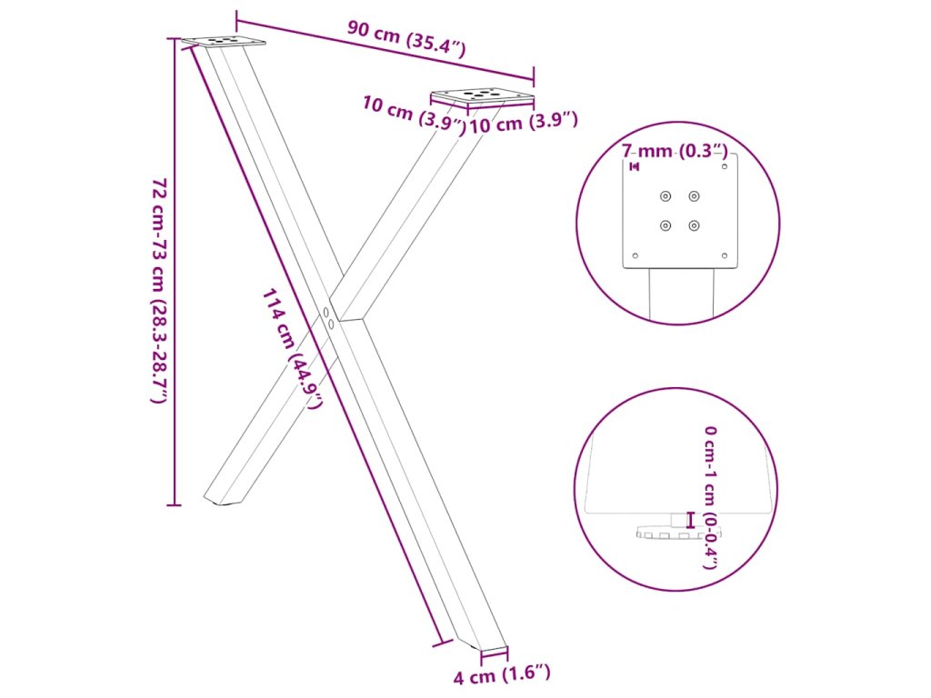 Nohy k jídelnímu stolu ve tvaru X, 2 ks, černé, 90 x (72-73) cm, ocel 4012924